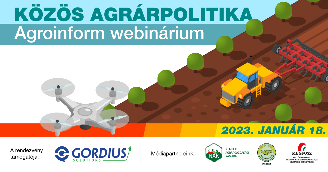 Jelentkezz az Agroinform webináriumára! Január 18-án az Agrárminisztérium szakemberei mondják el részletesen, hogy milyen lehetőségek várnak a gazdákra és milyen kötelezettségek teljesítésére kell felkészülni 2023-tól annak érdekében, hogy igénybe vehessék a gazdálkodók az agrártámogatásokat.
