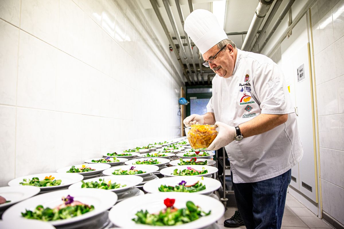 – Számomra a busa a kedvenc, nagyon fűszeres köntösben citrusos raguval készítettem erre az alkalomra. Főétel a szarvas, pálinkával illatosított és pácolt gombák, barnamártás és tettünk hozzá koktélparadicsomos mixet. Március 15-e közeledik, tányérdesszertnek a Pilvax desszertet választottuk, amit az orosházi Ficsor Zoltán készített el – sorolta az est finomságait a mesterszakács.