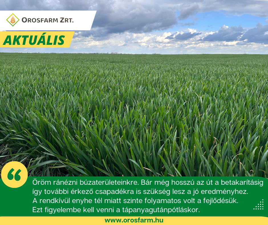 Öröm ránézni búzaterületeinkre. Bár még hosszú az út a betakarításig így további érkező csapadékra is szükség lesz a jó eredményhez. A rendkívül enyhe tél miatt…